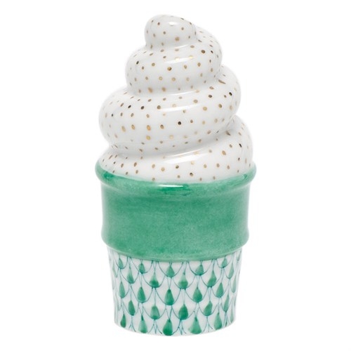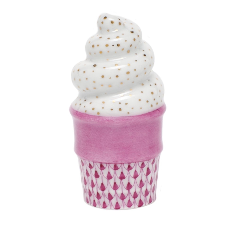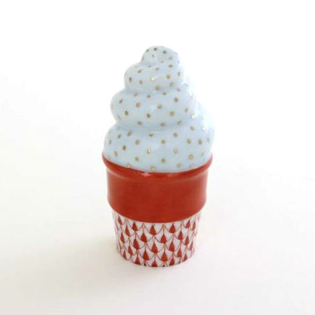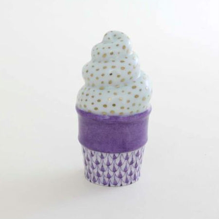 Herend Ice Cream Cone Porcelain Figurine Fishnet ColorsWhat could go with a cupcake better than an ice cream cone? For those with a sweet tooth, these cool treats are the perfect companion to Herend’s cupcakes. A great gift for the newborn in your family, for the serious Herend collector, or those looking to start their own collection.