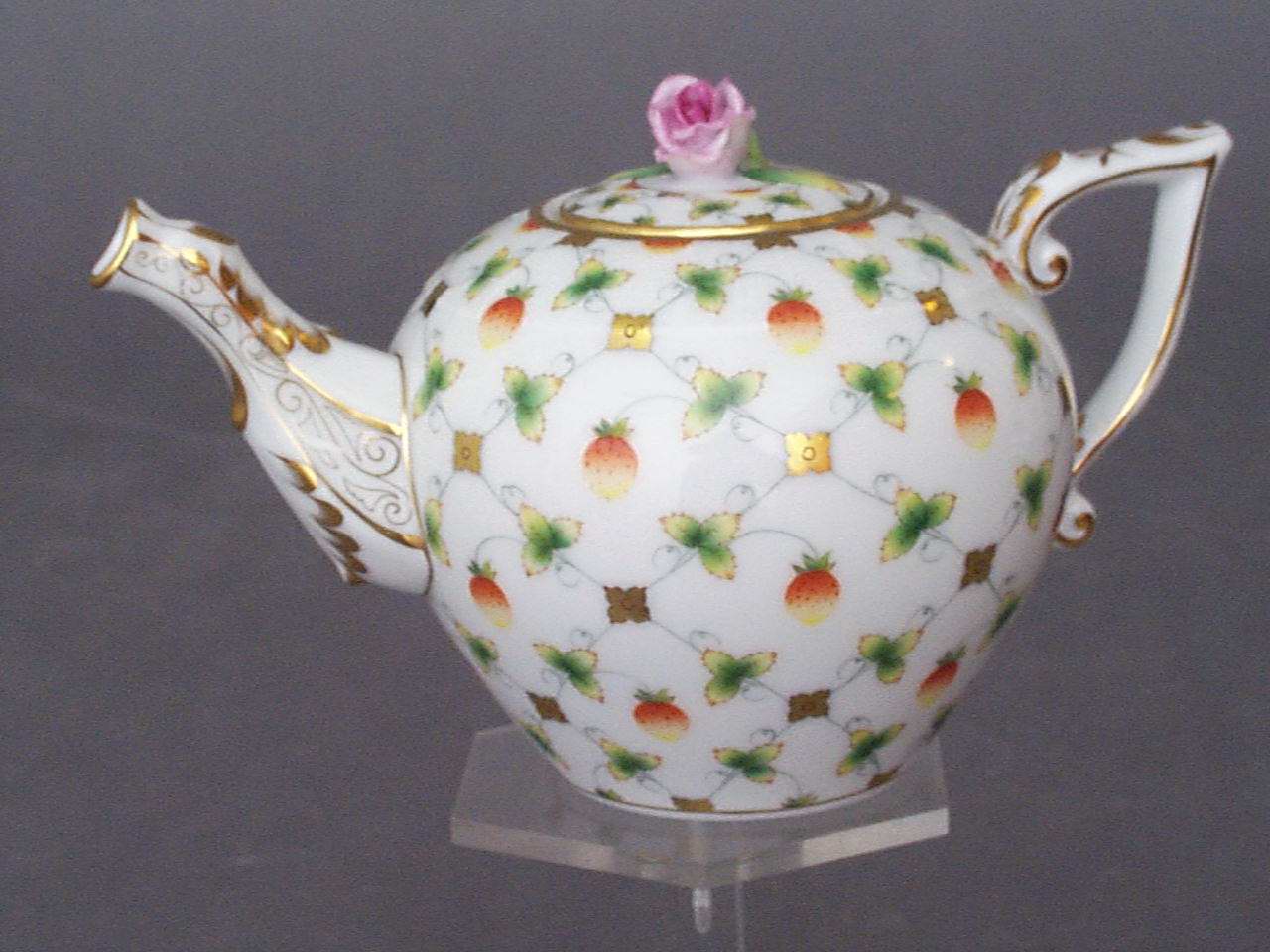 Herend 800ml Teapot hand-painted with Strawberry decoration