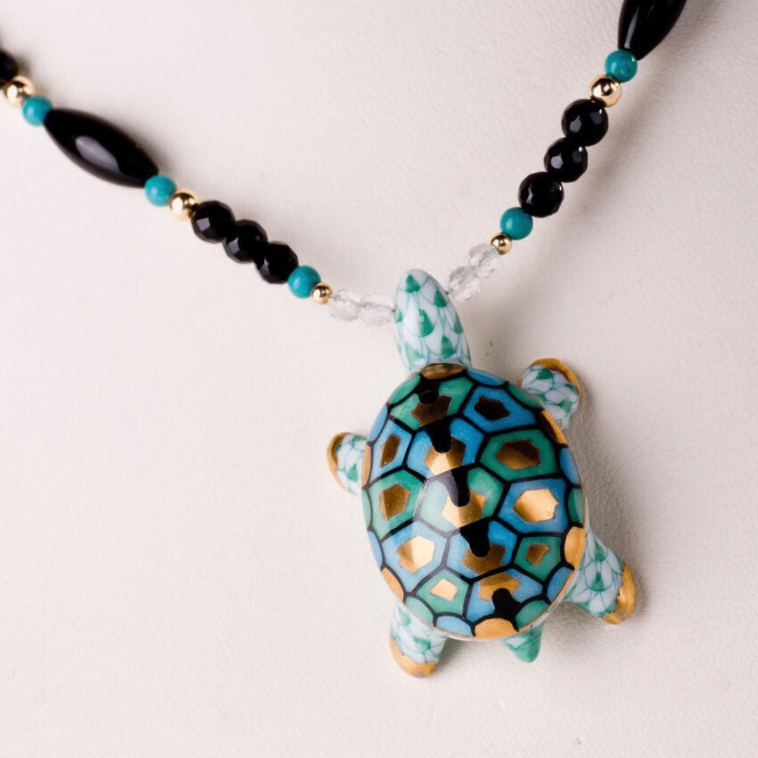 Herend Jewellery Collection is growing with adorable Turtle Medallions. Hand-painted at Herend Porcelain by Hungarian Artists.